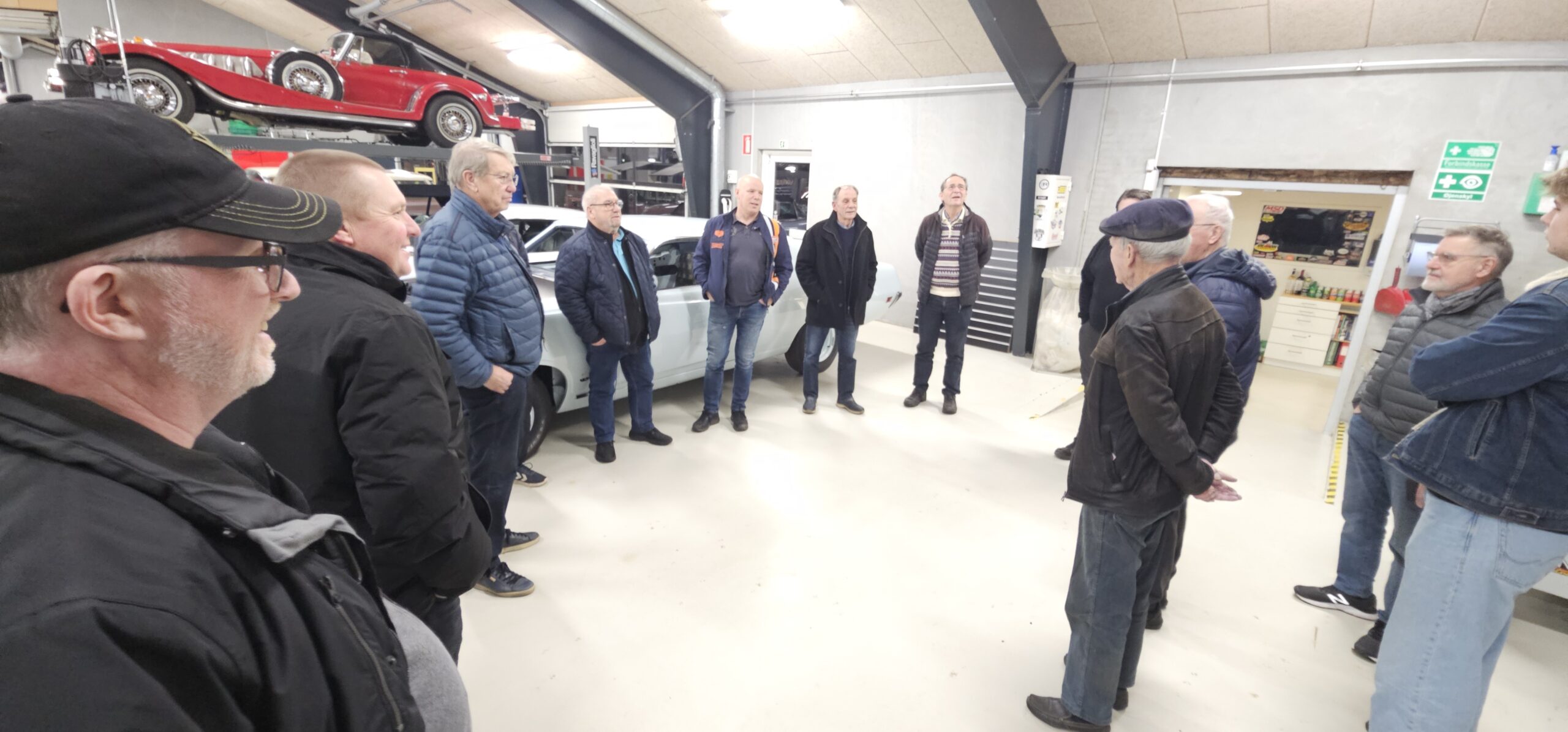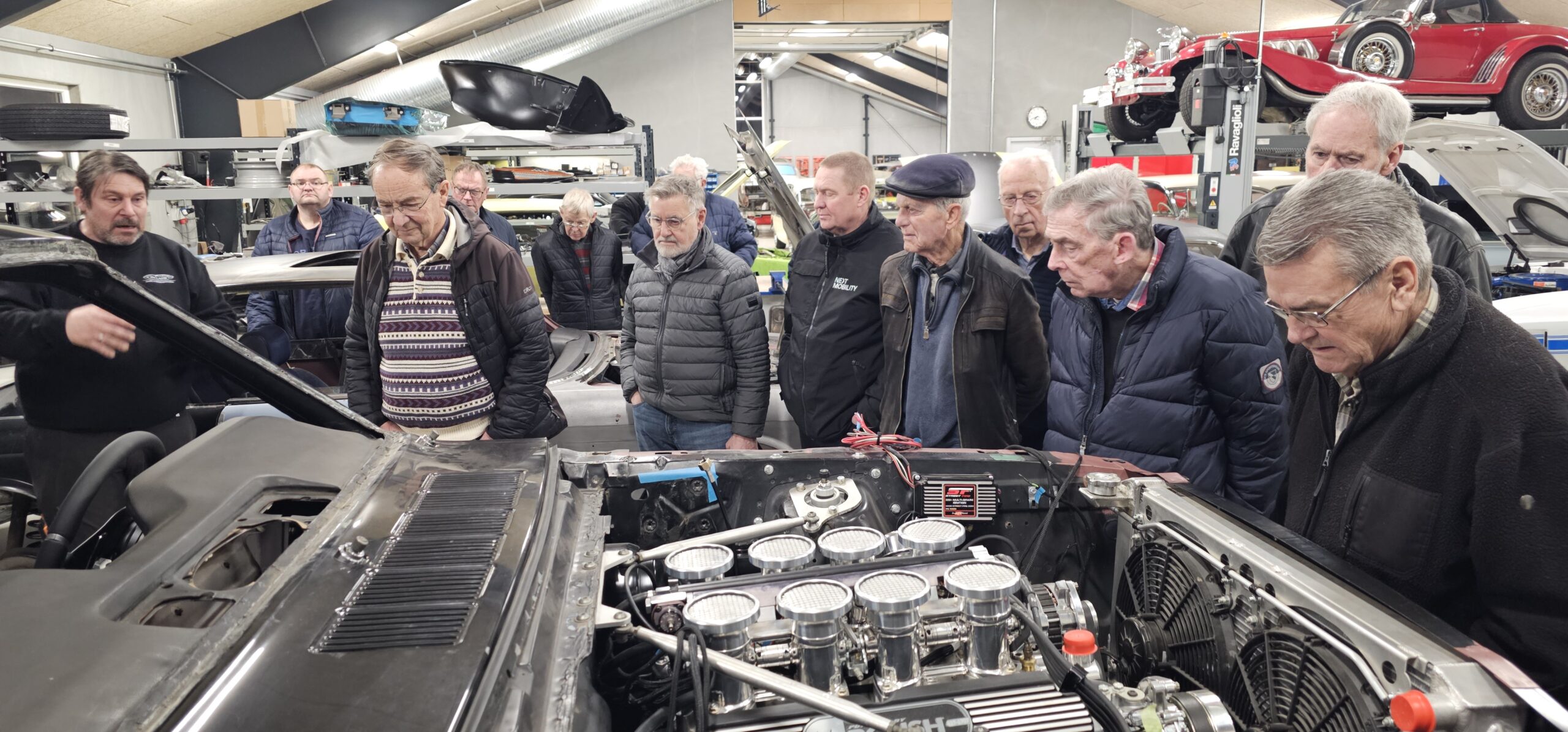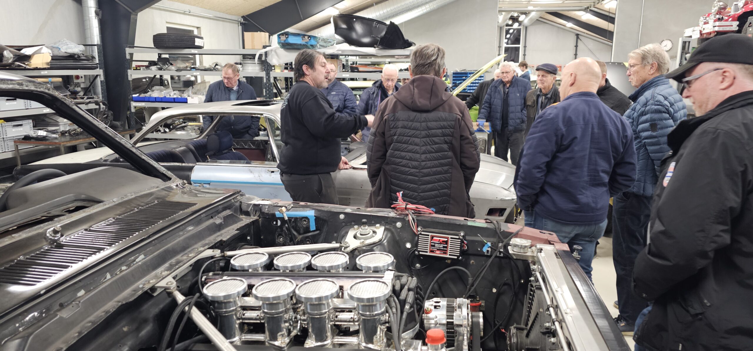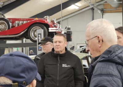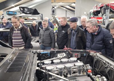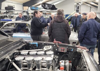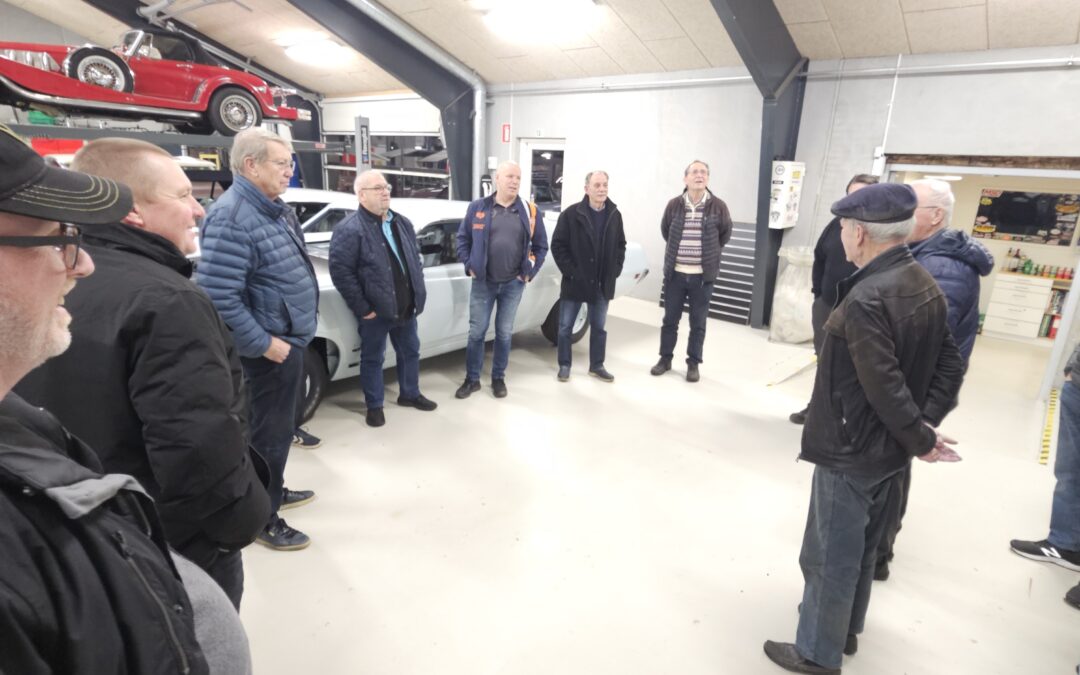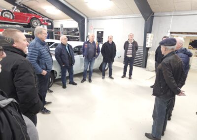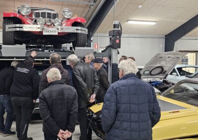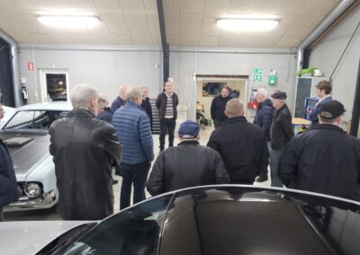 Under rundvisningen var der mulighed for at komme tæt på flere spændende biler og motorprojekter, og der blev stillet mange spørgsmål. Snakken gik livligt blandt medlemmerne, og interessen var stor for både tekniske løsninger og restaureringsprincipper.