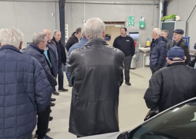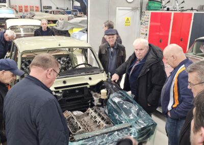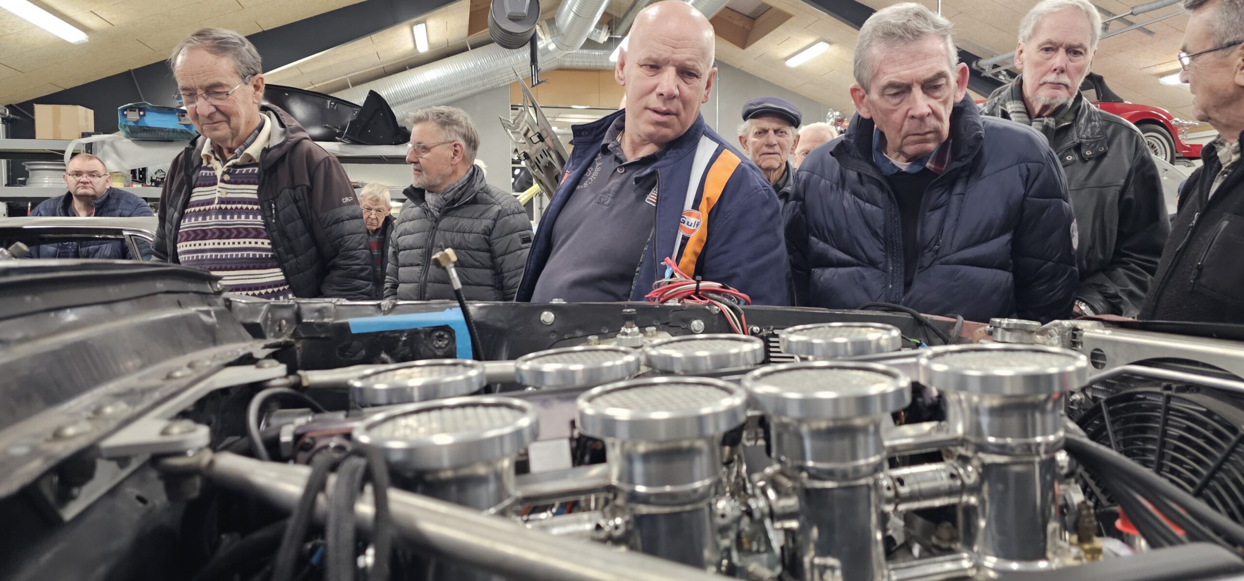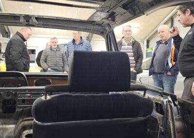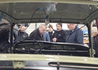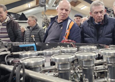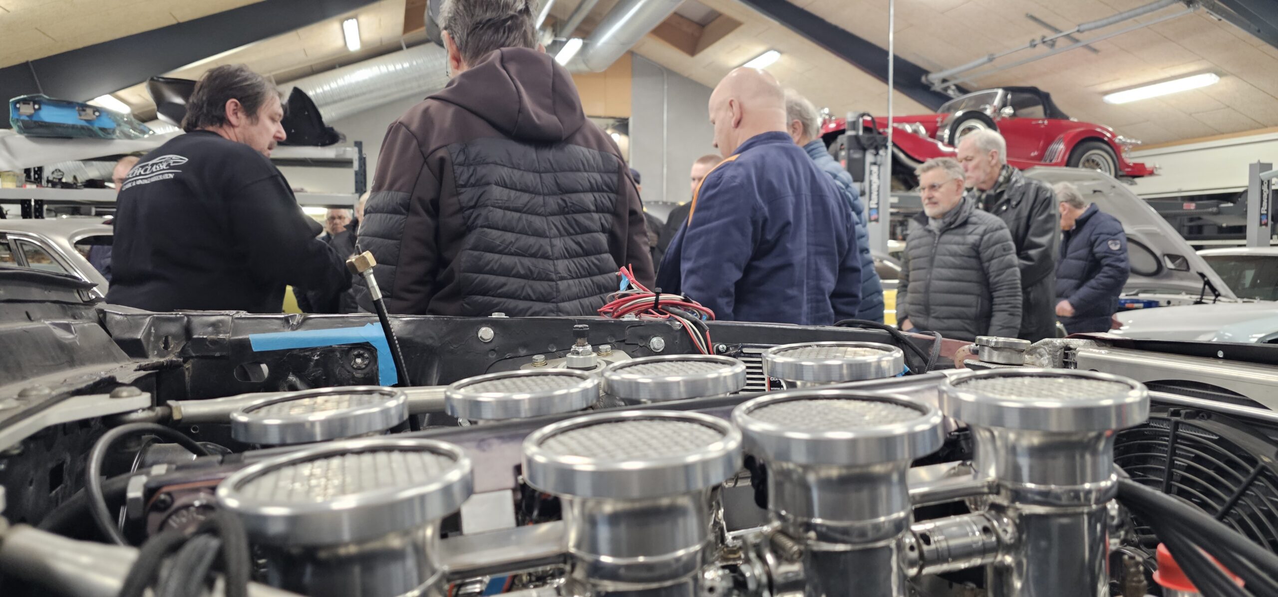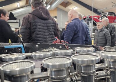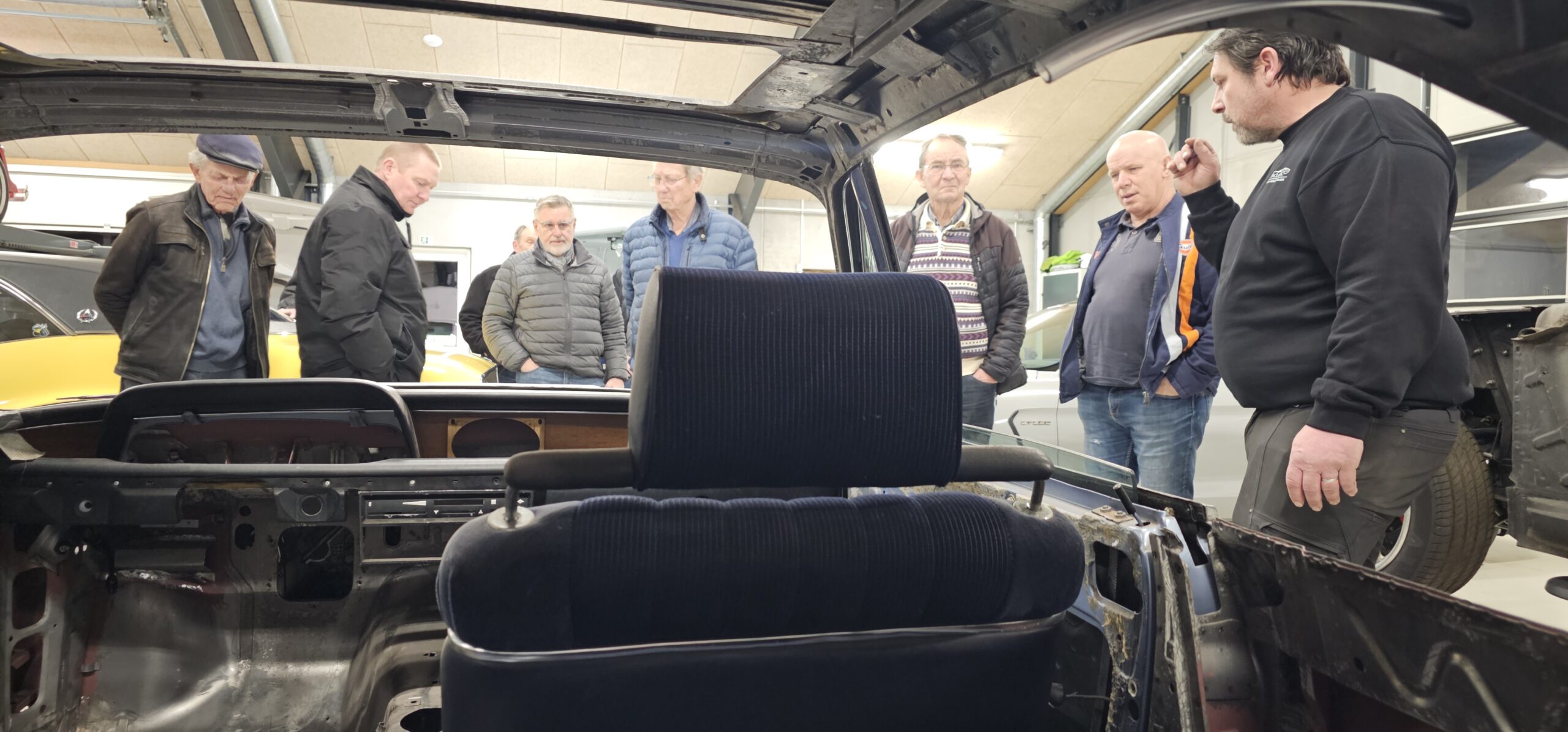 Under rundvisningen var der mulighed for at komme tæt på flere spændende biler og motorprojekter, og der blev stillet mange spørgsmål. Snakken gik livligt blandt medlemmerne, og interessen var stor for både tekniske løsninger og restaureringsprincipper.
