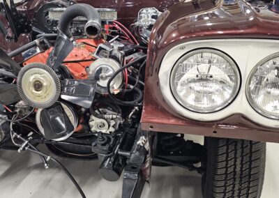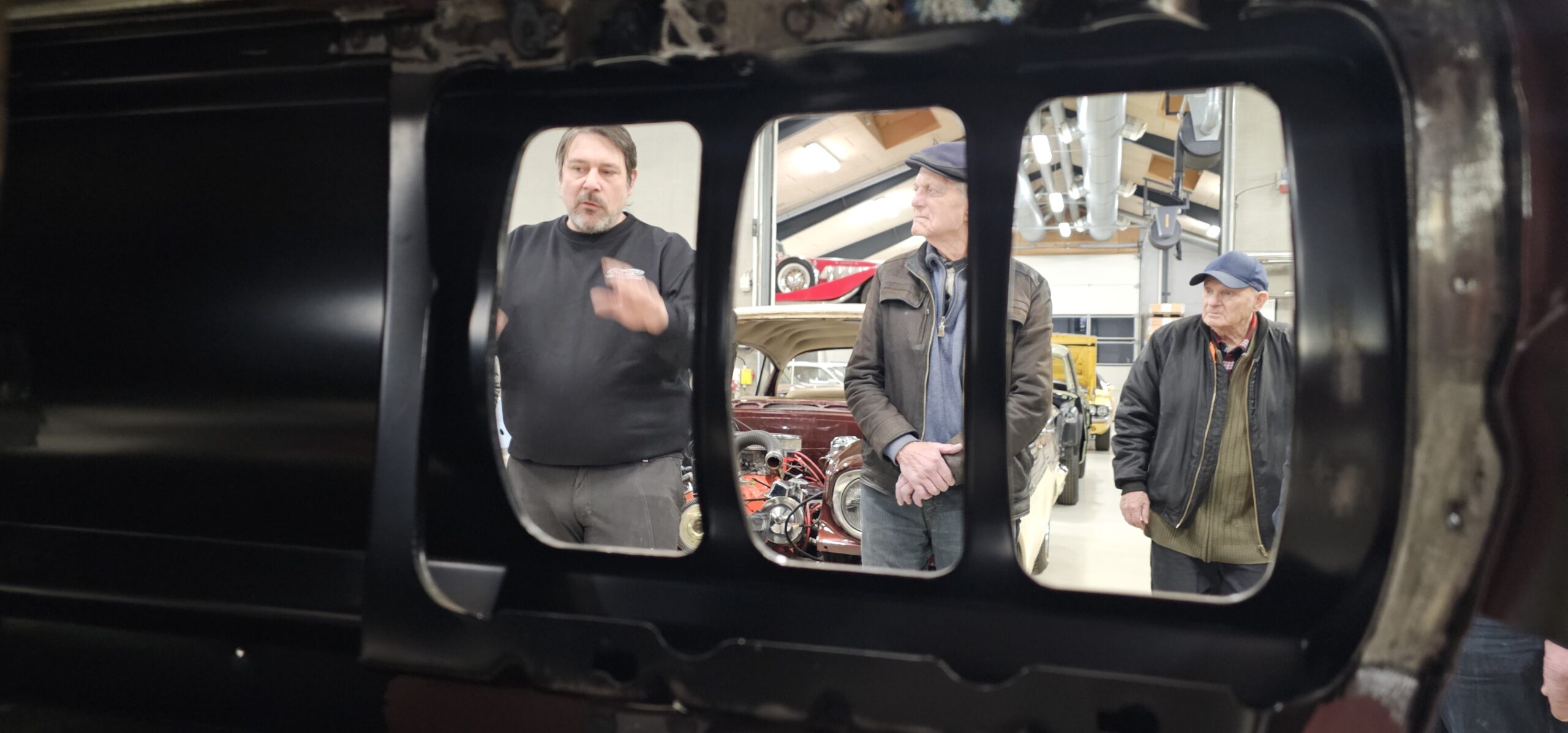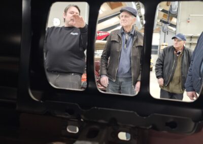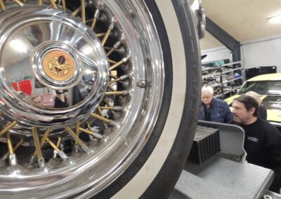 CH Classic råder over eget mekanisk værksted og karosseriværksted, og alle opgaver udføres internt. Carsten fortalte om de mange igangværende projekter, fra mindre reparationer til omfattende totalrestaureringer, ofte helt fra bunden. Der arbejdes med stor respekt for bilernes originalitet og autenticitet, hvilket tydeligt ses i både udførelse og detaljer.