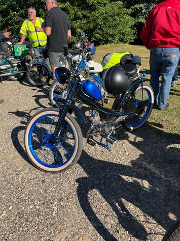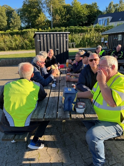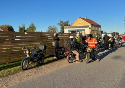 Årets sidste knallerttur – på efterårets første dag – den 1. sept. Der kom 20 køretøjer til start ved Børkop Vandmølle. En knallert – Yamaha – måtte desværre opgive, nærmest inden start, da der opstod tekniske problemer ved “mødestedet” i rundkørslen v/Egeskov Skovvej. En dejlig solskins aften, uden uheld, heldigvis…. På Brejning Havn blev der indtaget mad, sandwich, alm. “klemmer”, varme røde pølser fra en kaffekande med varmt vand eller blot en håndbajer. “Knallertklubben DVK-Lillebælt” siger hermed tak for i år, og nu kommer tiden – den kedelige lidt triste periode – hvor vi blot mødes indendørs. Vi ses den 6. oktober – men det får du – som BETALENDE medlem besked om !!! Ialt 34 km denne aften . Det blev til en 34 km tur KLar til start fra Børkop Vandmølle